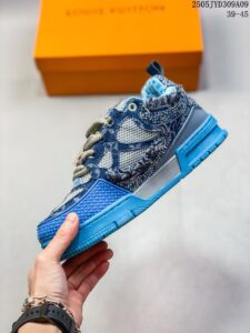 New Sneaker Lo Official Label ✅ Louis Vuitton Sneaker New LV Tyler x LOUIS VUITTON Trainer 3.0 Round toe lace-up low-top leather low-top casual shoes for men Gray-blue color Leather round toe lace-up low-top lifestyle casual shoes for men The latest color of LV Trainer by the artistic director VIRGIL ABLOH Cushioning micro material with breathable British style The details are exactly the same as the original